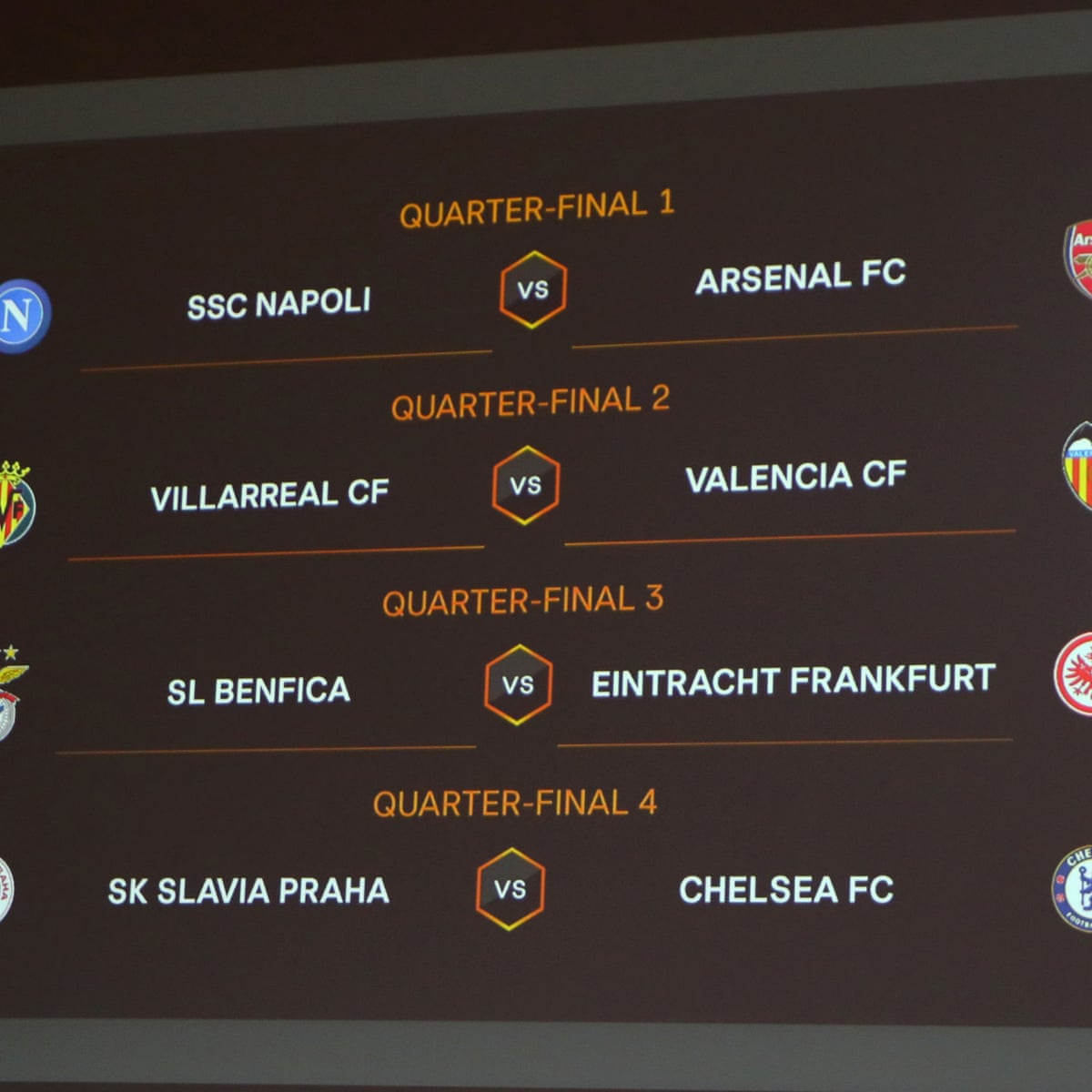 Giorgio Marchetti presided over the draw. Europa League quarter finals draw. Last modified on Fri 7 May 2021.